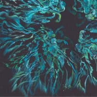 Daarnaast is ook met de sjablonentechniek gewerkt; vaste vereenvoudigde patronen die samen weer een nieuwe compositie vormen. Hierbij heb ik een eigen ‘zeefdruktechniek’ ontwikkeld; met penseel de sjablonen inschilderen en deze herhalen, negatief en positief, door en over elkaar heen.
